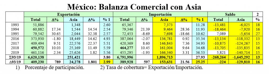 Esto ha orillado a importar insumos de manera creciente, fundamentalmente de Asia, para producir bienes orientados al mercado interno y al de exportación, con reducido y decreciente valor agregado, mismo que en el período 1993-2018 descendió de 59% a 37%.