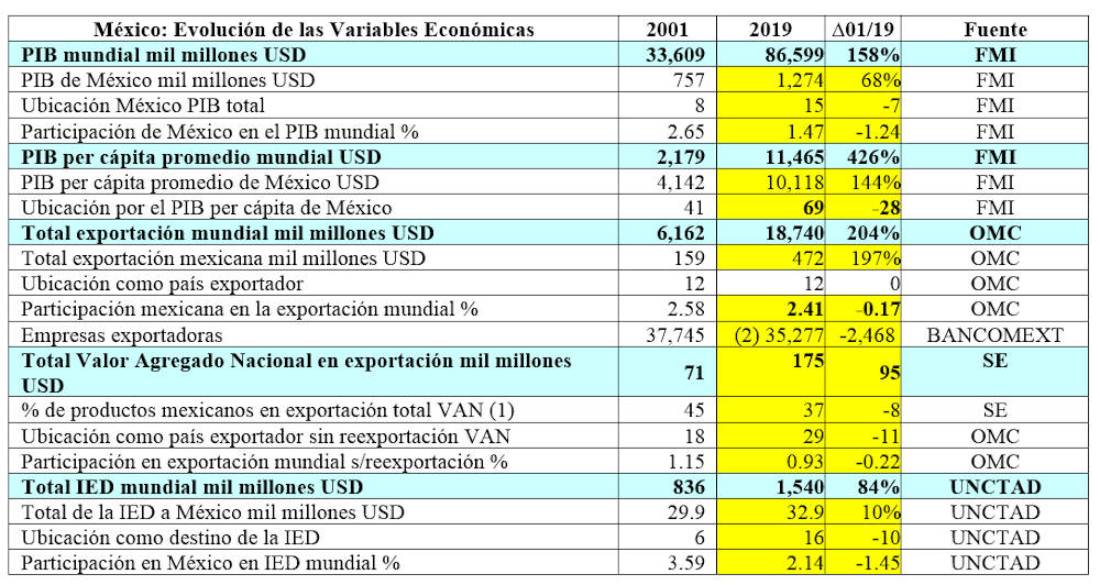 Así, a partir de 2001 se registró un enorme retroceso en todas las variables económicas de México, mismo cuyo deterioro se presenta en el siguiente cuadro, marcado con amarillo: