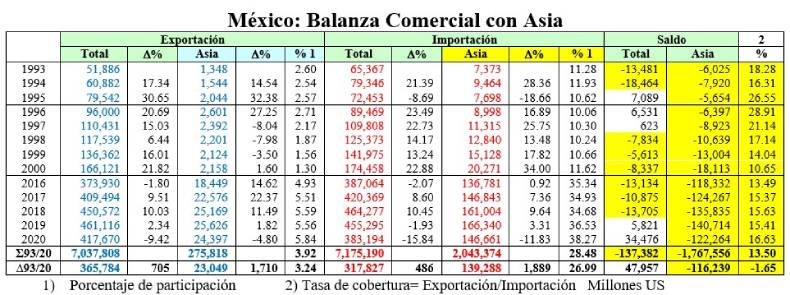 Cuando a esos funcionarios se les señaló las cifras negativas que presentaba la evolución del comercio de México con esa región, manifestaron que la importación y el déficit creciente con Asia no eran peligrosos y no importaba pues, el 70% de la importación, era de insumos para reexportación, sin darse cuenta de que realmente ese ha sido el gran problema que ellos le han creado a nuestro país, sin que fueran capaces de percibirlo para propiciar que se produjera algo más en México pues, aunque había empresas muy productivas en nuestro territorio, no se crearon condiciones para que el resto de la planta productiva nacional trabajara en un nivel competitivo y para que el marco sistémico resultara atractivo para las empresas extranjeras.