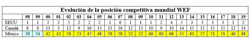 Así mismo, hay que mencionar que el WEF hace referencia a la pésima calidad de las instituciones públicas mexicanas y a la poca confianza en sus autoridades, por no ser capaces de definir políticas públicas realistas que incidan en el desarrollo económico del país, lo que se ha corroborado con las cifras presentadas en este análisis.