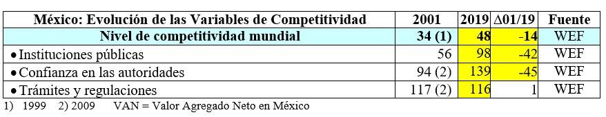 Elemento fundamental en este proceso negativo es la pérdida de competitividad que genera el marco sistémico tan deficiente que padecemos, de acuerdo con el Foro Económico Mundial (WEF), mismo que sitúa a Corea como el 19º país más competitivo en el año 2019.