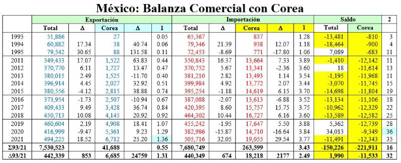 Lo que ahora nos dice la SE de que “El TLC México-Corea del Sur beneficiará al agro y sur mexicanos”, habría que verlo más como una declaración política conceptual, en la que hay un poco de razón pues, posiblemente permitirá un ligero incremento en la exportación de carne, aguacates y sardinas, así como algunos otros productos agrícolas mexicanos, pero, de ninguna manera compensará la creciente importación que tendremos de productos industriales coreanos, ni la pérdida que sufrirá la industria mexicana al reducir, aún más, nuestros aranceles de importación y enfrentar a la golpeada industria mexicana con una industria coreana mucho más competitiva.